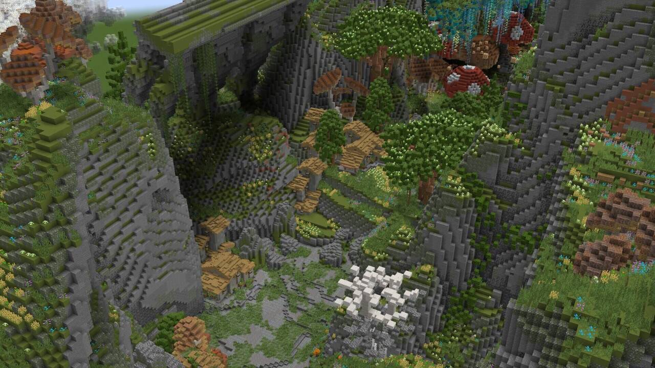 颜色相近纹路不同的方块可以在山体形成「糙」的细节效果