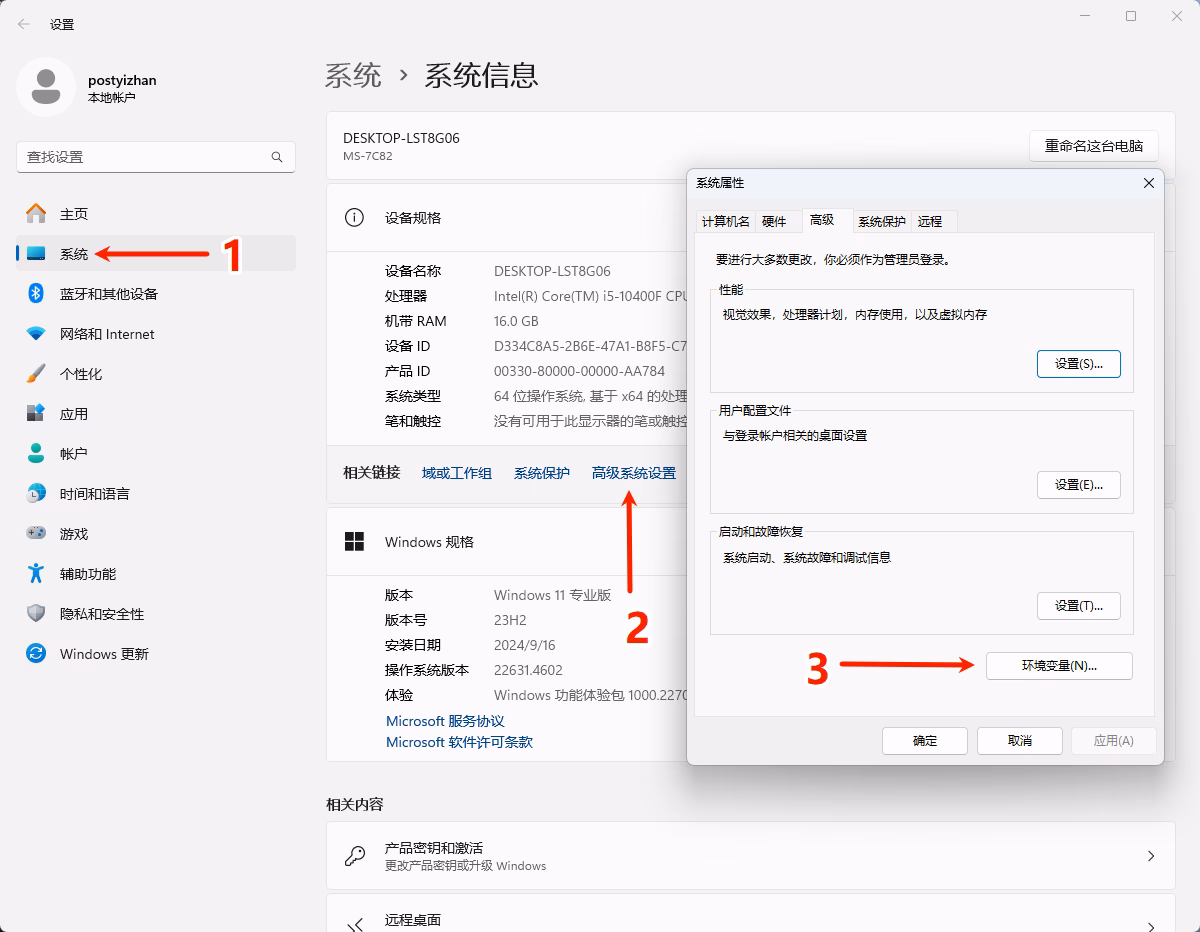 打开环境变量面板: